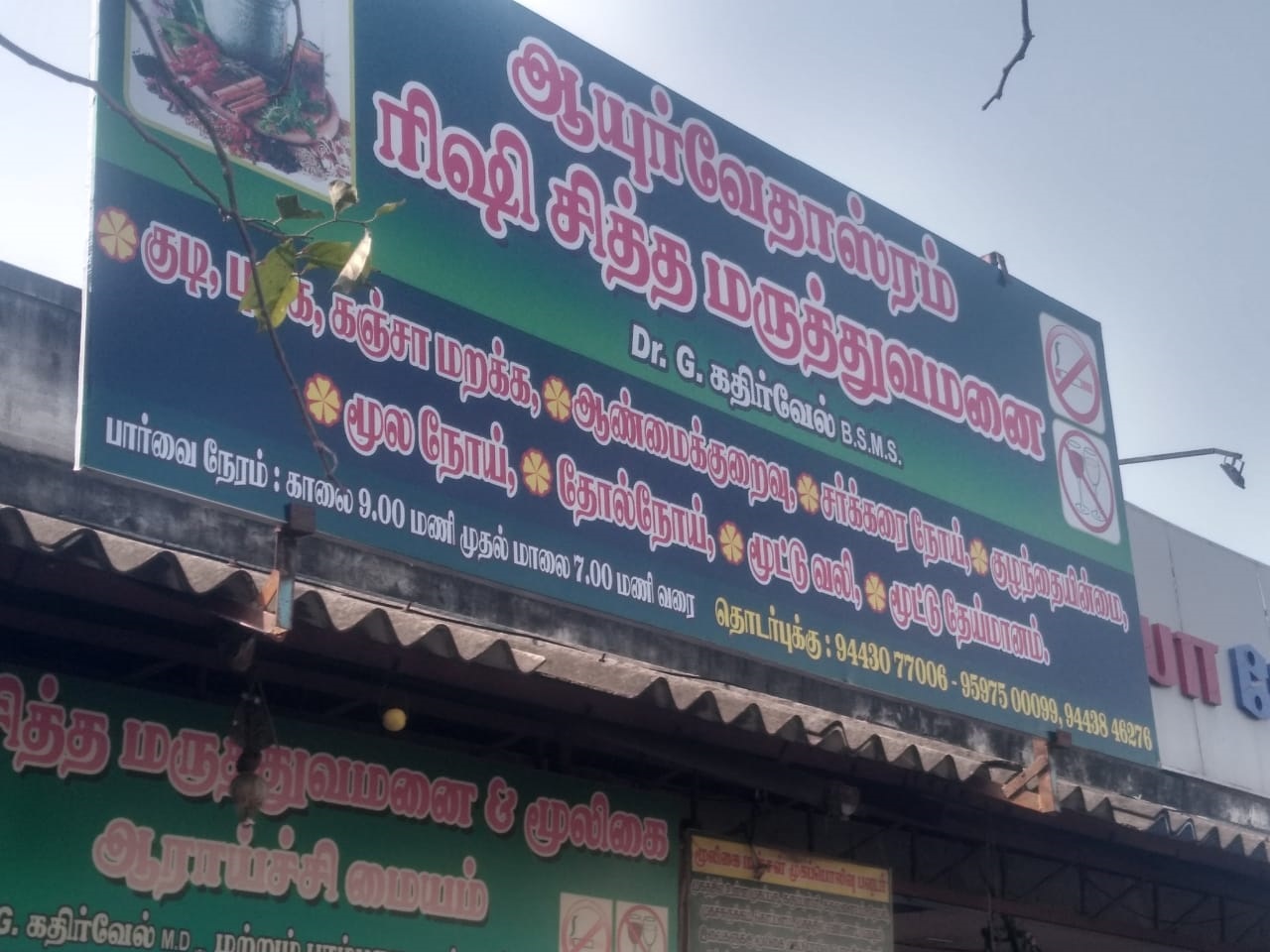 எங்கள் நிறுவனர் டாக்டர் ஜி.கதிர்வேல் B.S.M.S., அவர்கள். அரசு சித்த மருத்துவக்கல்லூரியில் பயின்று Dr.MGR Medical University யில் பட்டம் பெற்று நமது நிறுவனத்தை 21 ஆண்டுகளாக சிறப்பான முறையில் சிகிச்சை அளித்து வருகிறோம். நாம்மருந்துகளை உணவேமருந்து மருந்தே உணவு என்ற முறையிலும் அனைத்து வகையான நோய்களுக்கும், நோய் வராமல் இருப்பதற்கும், பழங்காலத்து ஓலைசுவடி, காமநூல், ஆயூர்வேத நூல், சித்தர்களில் பாடல்களில் உள்ள மருத்துவ குறிப்புகளை நன்கு ஆராய்ந்து அதன் மூலம், ஆண்மைக்குறைவு, குழந்தையின்மை, சர்க்கரை நோய், மனநோய், குடி, புகை, போதை மறக்க செய்ய மருந்துகள் செய்து வியாதியஸ்தர்கள் தன்மைக்கு தகுந்தது போல் மருந்து கொடுத்து முற்றிலும் குணப்படுத்தி வருகிறோம்.